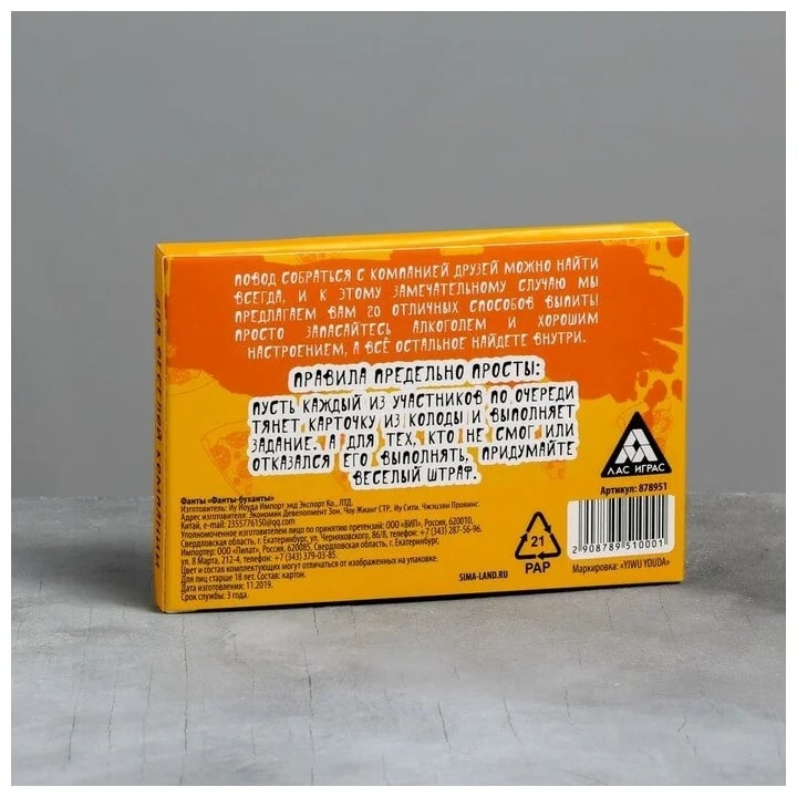 Купить игра для компании "фанты буханты" 20 карт от 100 руб. с доставкой до пункта выдачи в Балашове. Интернет магазин ДекаМаркет. Оплата при получении.